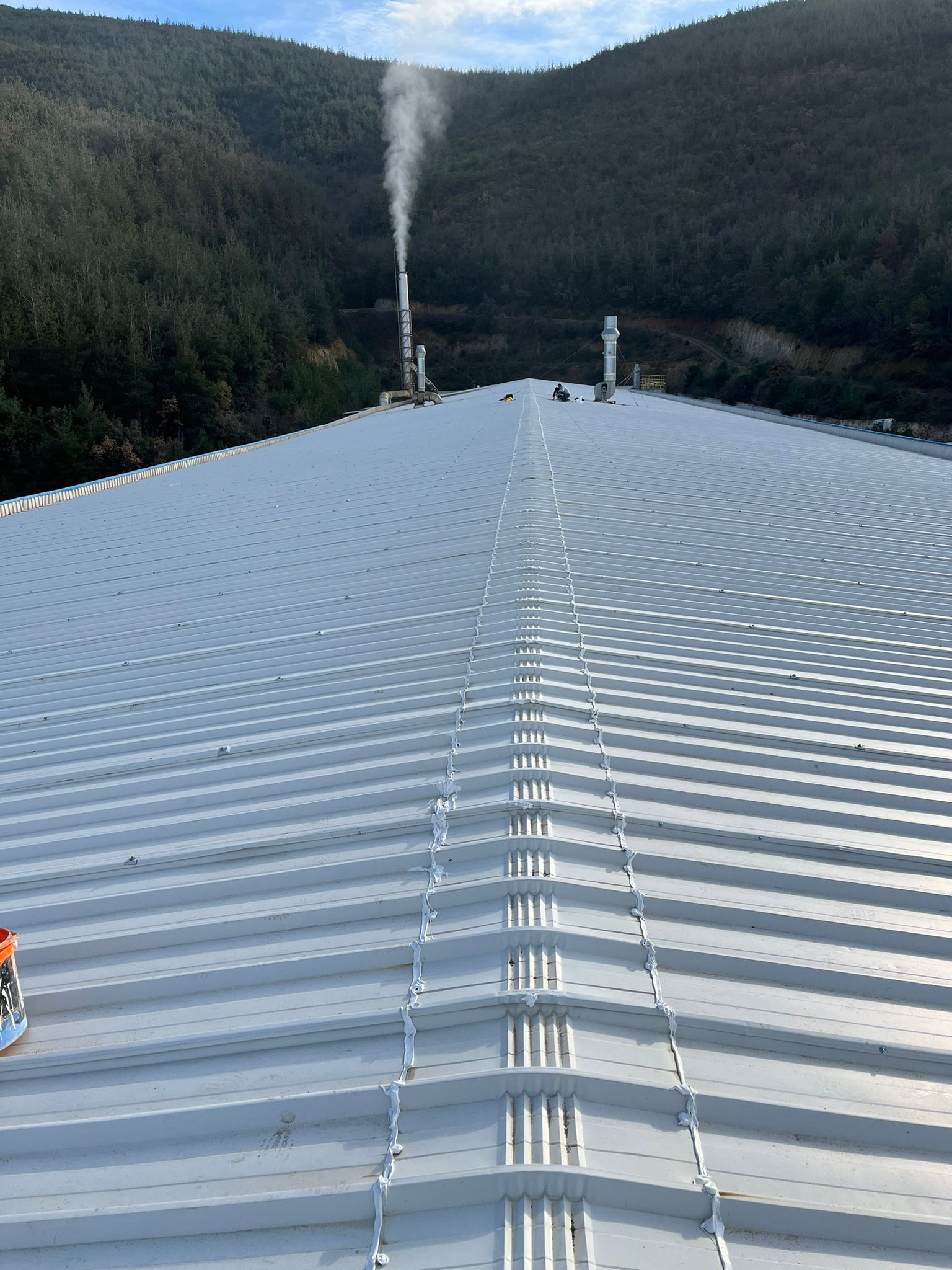 Dere yalıtımı için, Weber Prim UV ürünü kullanıldı. Bu özel yalıtım malzemesi, suyun çatının iç kısımlarına sızmasını önlemek için tasarlanmış olup, yüksek UV dayanıklılığı ile uzun ömürlü bir koruma sağlar. Dere yalıtımı, su akışının doğru yönlendirilmesi ve suyun yapıya zarar vermemesi için kritik bir öneme sahiptir.